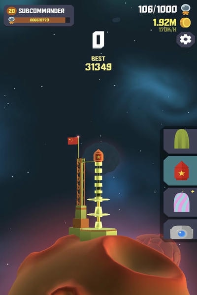 和第一版相比,在游戏画面上有了一个很大程度上的提升,制作更加精美。吸引的玩家数量也是越来越多。不过其游戏玩法没什么太大的改动,不过其给玩家们还是带来了一点惊喜的,其所制作的动画效果非常炫酷。将带给玩家超乎想象的游戏体验!游戏以浩瀚无垠的宇宙星空为背景,每一颗星球发射火箭时看到的星空都不尽相同,有火红色的星云,也有空洞的黝黑伴着点点星子的普通,非常壮观美腻哟!虽然游戏的画面风格属于动漫风格,但是星空刻画的却恰到好处,推进器发出的火焰色也不同,配上空灵的bgm,体验起来相当不错。
