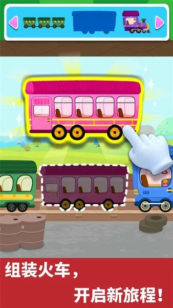 【宝宝小火车】中通过组装和模拟驾驶火车,让宝宝认知火车的构造、作用,学习乘车知识,体验驾驶乐趣!