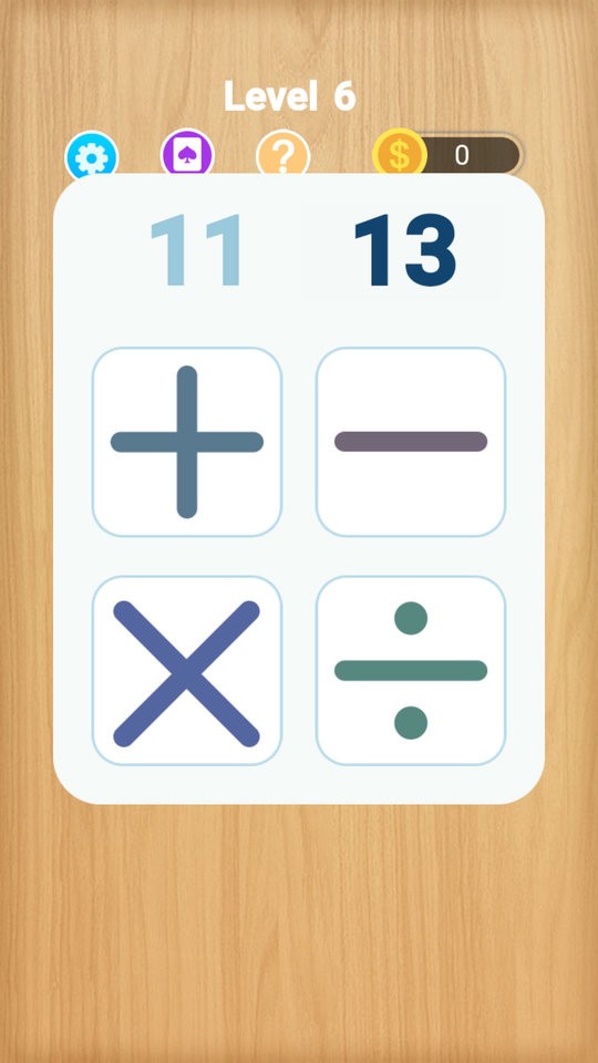 此游戏对有解组合进行了分类,比如分为10以内只用加减法,不用分数,要用分数等,来适应不同年龄段的用户。同时根据已有数据统计,按照难度分为6个难度等级,每个难度个等级各有227关。