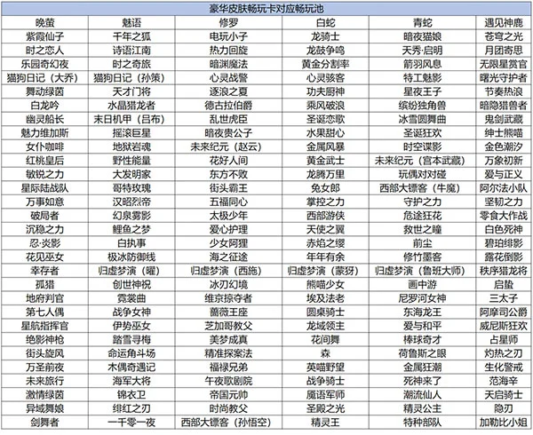 本次豪华皮肤畅玩卡对应畅玩池: