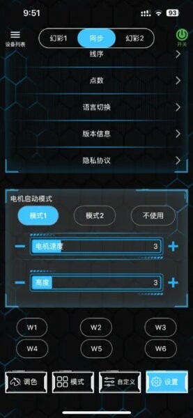 针对特定硬件设备,提供电机启动和刹车转向模式的设定,增强硬件适配和灯光联动的精准性。