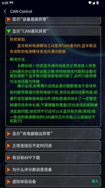 针对CAN通讯异常,软件提供详细的故障信息提示,便于用户快速定位问题来源。无论是通讯线路异常还是信号干扰,系统都能准确反馈,并辅以解决方案库,帮助用户高效完成故障修复工作。