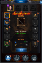4、玩家通过点击主界面的“锻造”按钮,对装备进行升级强化。强化装备需要消耗强化石和金币。在获得强化石和有足够金币的情况下,系统会有提示的红色小点出现,点击红点即可进行操作。