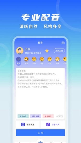 二由全能配音王是一款简单高效的文字转语音的智能配音软件,拥有100多个发音人,高逼真模拟真人发音,多种情绪发音可支持多场景使用.