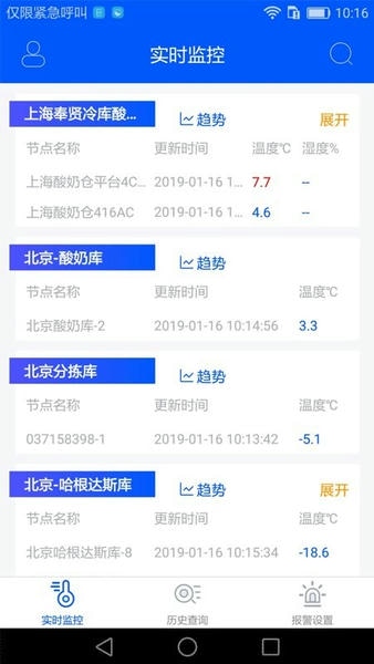 历史查询:对各个节点的数据进行了记录,可随时查看到历史数据;