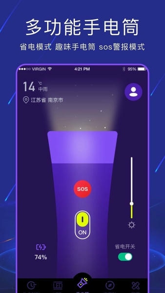 手电筒light软件是款手机灯光照明工具,软件内还包含多种日常使用工具,为你带来更便捷智能的手机智能照明方式。帮助用户提供日常应急应用,指南针、led显示屏、省电手电筒等工具!