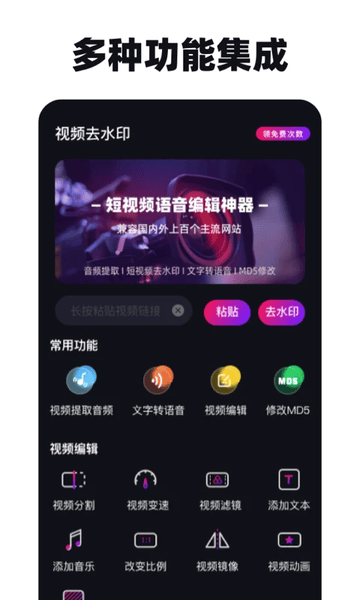 一键去水印是一款简单易用的视频去水印,内置强大的视频编辑功能,制作视频简单灵活。