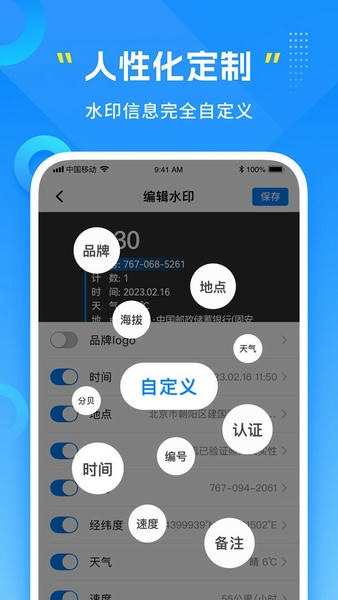 可编辑水印相机app是款专为手机相册图片进行水印添加的编辑工具,能够满足各类用户需求,包含工作打卡、旅行打卡、学习打卡等元素,用户还可以自行进行diy设计,可进行自由水印编辑创作!