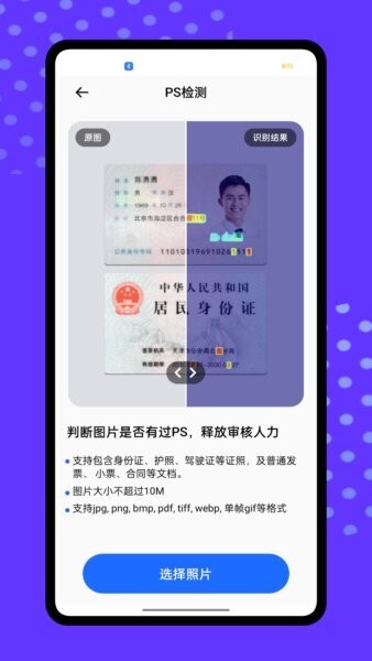 通过技术检测图片中的PS痕迹,帮助用户辨别图片是否经过修改,适合新闻从业者及内容审核使用。