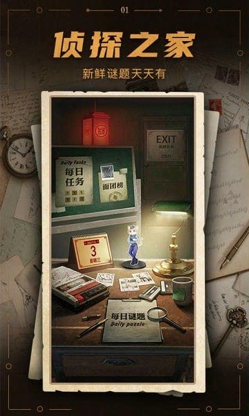 谜案馆官方版上线!全新「侦探之家」场景等你来发现!重磅推出「商城」板块,面团兑换华丽主题&头像挂件,还有海量解谜书优惠券和线下密室折扣券等你拿!