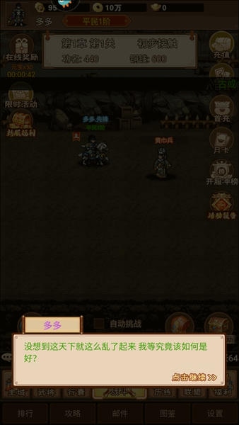 把最好的专武、宝物与速度词条给主C与控制位,推主线至自动与扫荡开放。Day2-3:稳步成型