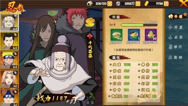 装备与技能系统:装备强化、技能升级、天赋觉醒,多维度提升忍者能力。