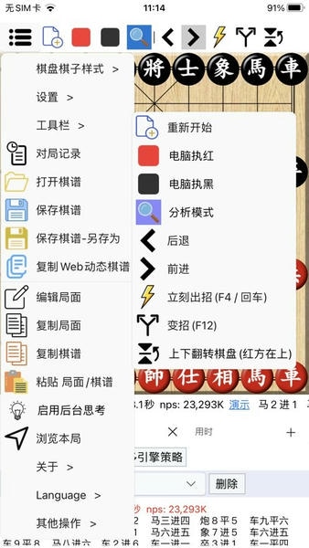 可以使用云引擎和云库分析象棋棋局,也可以和云引擎进行对弈。