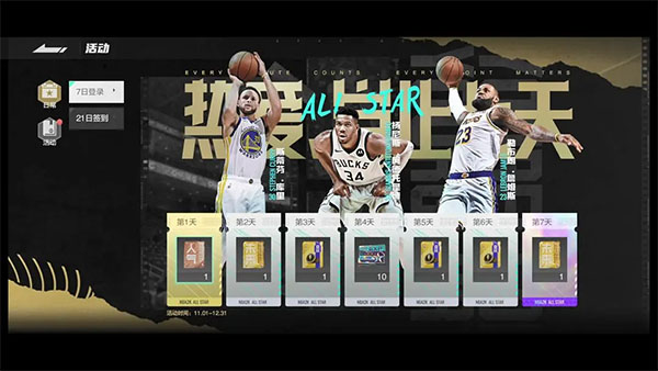除了2个收藏球员,每日登录游戏,均能获得奖励,切莫错过。