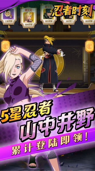 开局福利丰富:游戏为新玩家准备了大量福利,例如抽卡奖励与登录奖励,让玩家轻松获得强力忍者。