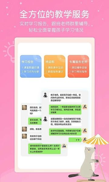 2.实时发送孩子的学习报告,家长轻松全面掌握孩子的学习情况。