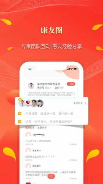 三甲医院顶尖专家带领杰出的医疗团队入驻,建立专家唯一官方的医患交流平台。提供免费的疾病咨询服务,连接同种疾病患友,分享彼此的经验感受。