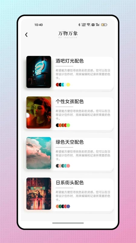 - 应用内的壁纸具备丰富的色彩风格,从清新淡雅的柔和色调,到鲜艳明亮的高饱和度色彩;从简约的单色调设计,到绚丽多彩的多色组合,满足用户对不同色彩搭配的需求。