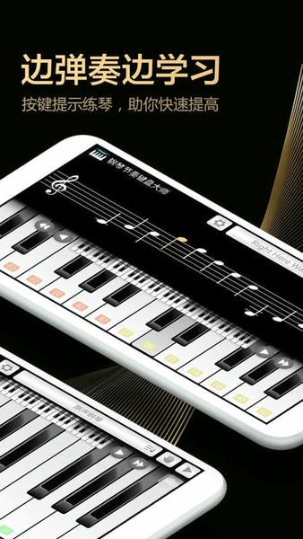 钢琴节奏键盘大师app智能模拟钢琴按键,将你的手机化身为掌上钢琴;全键盘模拟,海量曲谱,自由练习包含7种乐器模拟,多点触控,标准音色,为大家带来优质的掌上模拟练习工具!