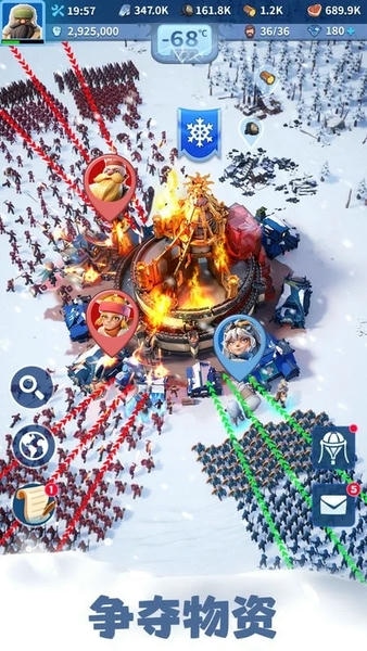 - 英雄羁绊系统:不同英雄间存在羁绊加成,同阵容上阵可触发额外属性增强,如“猎人+医师”可降低暴雪中伤亡率。