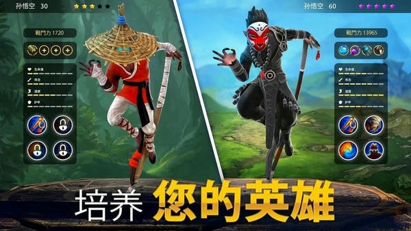 1、自由选择顶级技能,提高英雄等级,解锁各种强大的技能,多种技能组合让战斗操作更流畅!