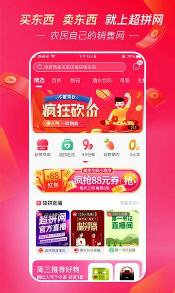超拼网,是超拼网旗下的社交直播电商平台网红的直播间农品的大舞台。平台以直播与去中间商为核心,以更多直观体验形式、以更低的价格、更好的品质,为您带来更直接,更舒心的社交直播购物体验。