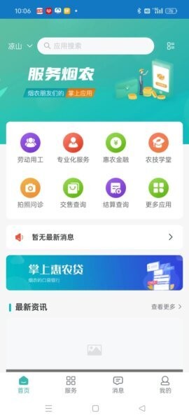 进入主界面后,用户可以清晰看到“劳动用工”“专业化服务”“惠农金融”“农技学堂”等多个入口,选择所需功能,快速进入对应服务页面。