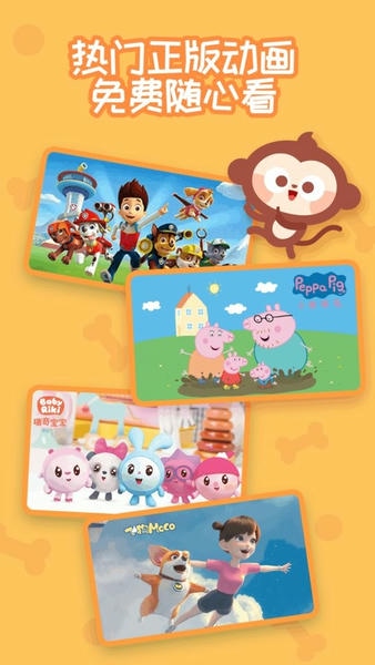 动画:海量宝宝爱看的热门动画,正版小猪佩奇,汪汪队立大功,海绵宝宝,哆啦a梦,倒霉熊,可可小爱,海底小纵队等,宝贝喜爱的动漫明星都在这里等你一起玩耍哟~