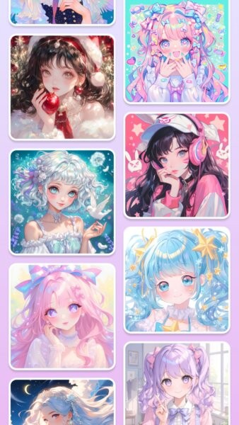 丰富的动漫插画素材:应用提供海量高清插画模板,包括可爱少女、动漫人物、梦幻场景以及治愈系风格等,让用户每天都能发现新的创作主题。