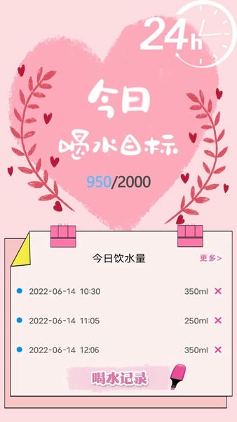 喝水提醒智能提醒您的喝水时间,设置每日喝水打卡目标,每次喝完水,都可以进行打卡,多多喝水,给你的健康助力!