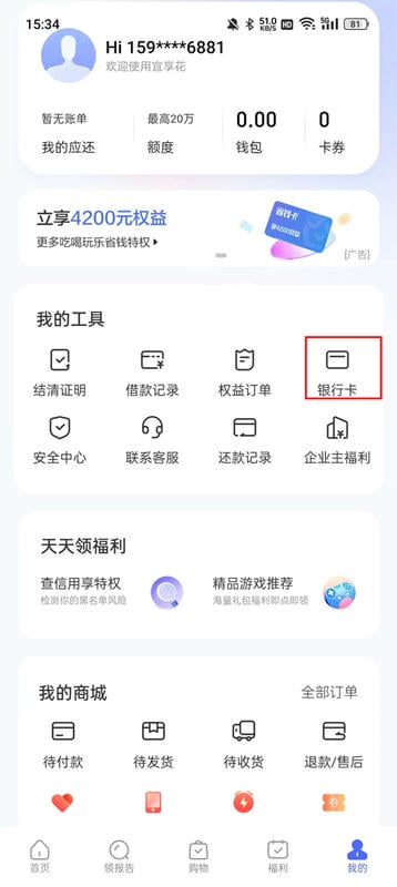 申请材料:实名信息、银行卡信息等