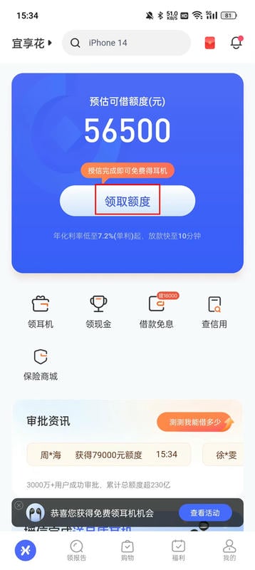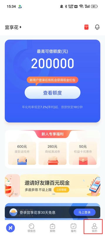 凭身份证即可申请,简单三步操作,即可享受宜享花为您提供的专属额度。