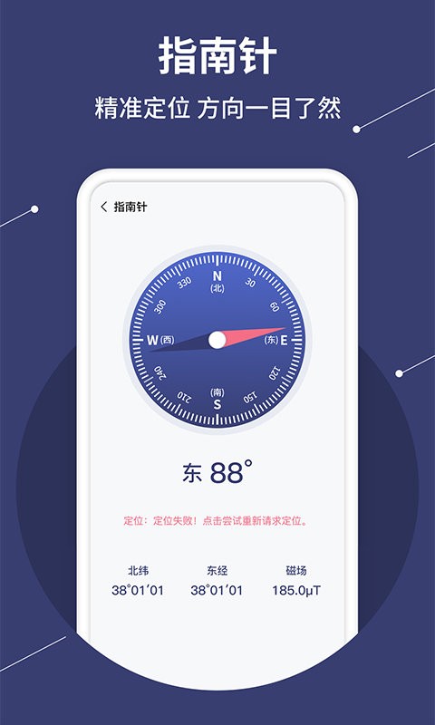 【指南针】显示虚拟定位,方向,快速找到东南西北;