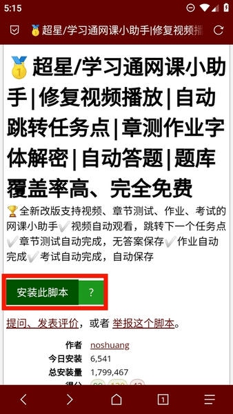3、随便选择一个脚本打开,点击【安装此脚本】。