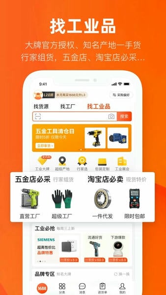 1688批发app是针对淘宝卖家的一站式货源服务平台,为千万淘宝卖家提供经销、代销及批发、订货的组合式货源服务,同时帮助供应商建立向淘宝零售市场进行货源分销的电子化渠道网络。