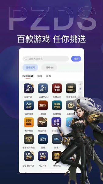 --根据游戏的类型不同进行了详细的分类,方便用户快速找到喜欢的账号。
