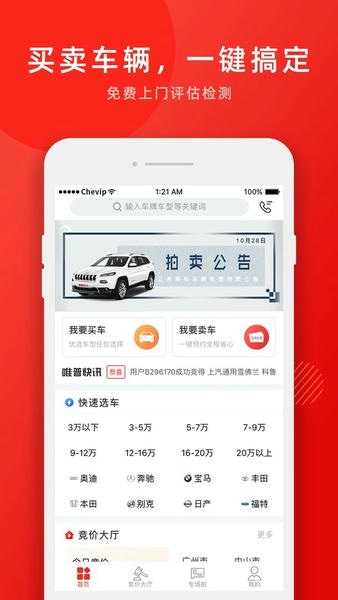 车唯拍最新版作为专门进行二手车拍卖的手机软件,为用户提供专业优质的二手车相关管理体系,帮助大家进行筛选。为用户带来透明、优质、可信赖的二手车市场购车方式!