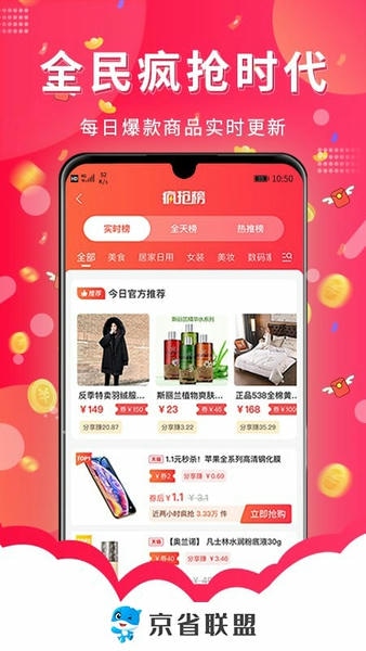 京省联盟,社交电商导购商城,是款结合线上于线下的优惠购物应用,网购达人自己组建好货分享交流的一个商城,每天特价美食,特价商品等您来!