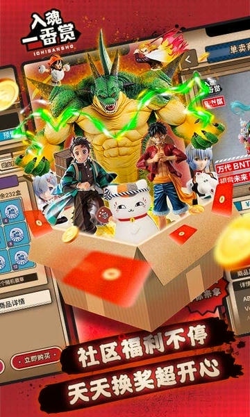 入魂一番赏app是款一番赏贩售商城,软件拥有丰富的商品资源,5件包邮,还拥有官方交易集市,社区活动福利等等,专门为喜欢盲盒的用户打造的线上商城软件,超多西游奖品等你来抽,花更少的钱博机会!