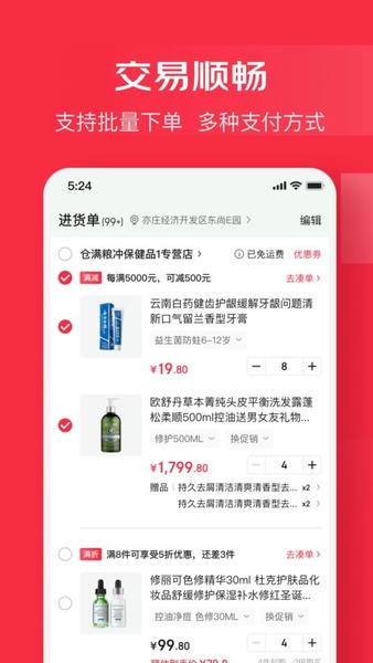 京东万商app作为京东旗下B端商城,为各类商铺、电商、批发商等用户带来更全面便捷优惠的线上采购批发渠道,满足更多商家交易需求,为大家带来更优质的采购交易方式!