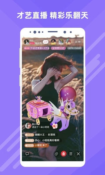 - 直播互动:有颜值、有趣、有才艺的主播播不停,直播间亲密互动,守护心动的她!