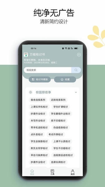 万能检讨书app是款专门一键生成各类检讨书的手机工具,可通过关键词等元素,为您一键生成各种样式的检讨书。以治愈系风格为用户带来丰富的检讨模板以及内容,没有任何广告弹窗实用更流畅!