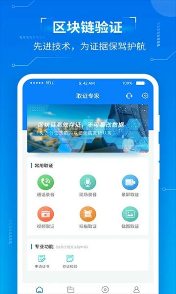 取证专家是一款集录音、录屏、拍摄于一体的取证软件。 取证专家为你提供来电录音取证、去电录音取证、网页取证、视频取证等多元化的取证方式,适用范围广,无论你需要线上取证还是线下取证,取证专家都能助你一臂之力,轻松收集证据。除此之外取证专家还带有区块链上传验证功能,存证之后会自动上传文件到区块链增加区块链验证,以此保障文件的真实性。
