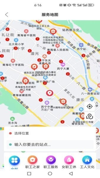 一张地图呈现服务站点分布,支持选择位置、输入目的站点,帮助你快速锁定最近的服务点位。