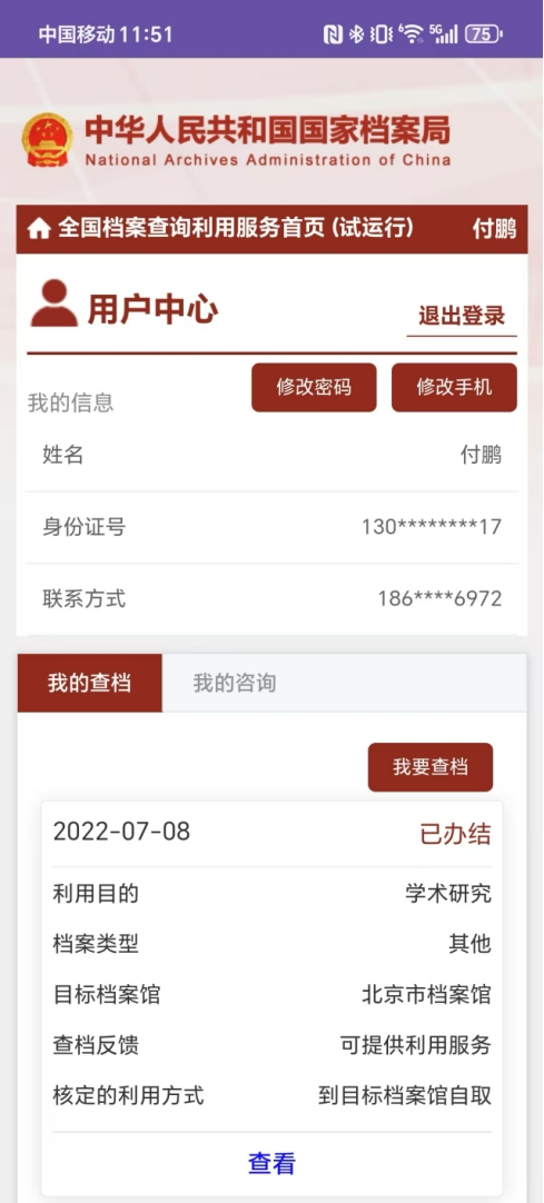 全国档案查询利用服务平台 v1.0