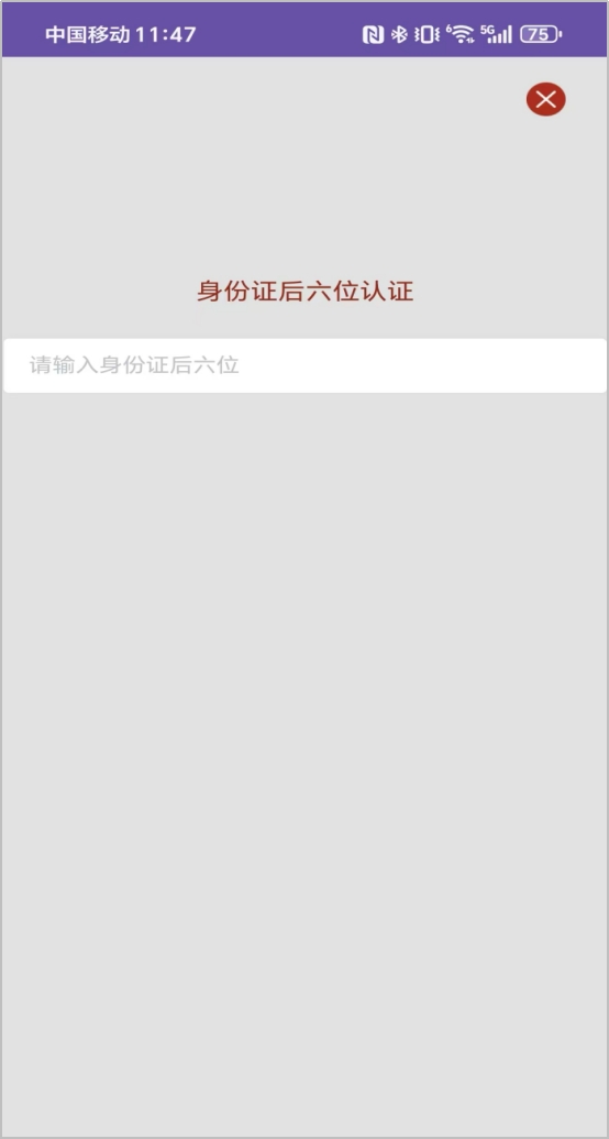 滑块拖动到指定为止后,进入后续操作,需要进一步输入用户身份证号码的后六位,用来保障用户信息安全。如下图所示: