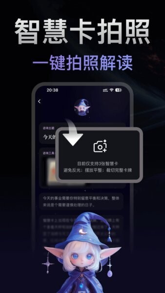 一键拍照解读智慧卡:支持拍摄多张智慧卡照片,自动识别牌面内容并生成完整解析,再也不用反复翻书对照,小白也能轻松上手。