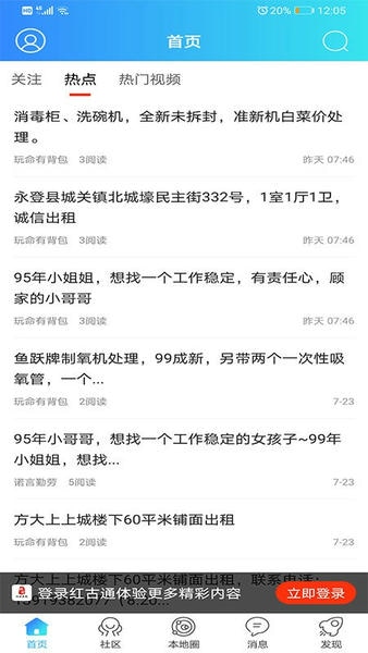 红古通app专为兰州红古用户提供的生活便民服务中心,聚合本地最新资讯新闻,时政看点以及为大家带来便利的线上便民生活服务内容,为大家带来多元化的线上生活娱乐以及便民服务内容!