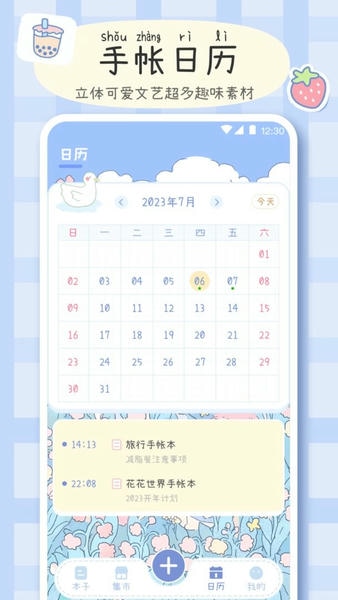 内置日历功能,用户可以根据日期快速浏览手帐记录,方便回顾过去的美好时光。