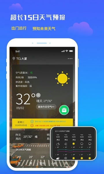 2、提供未来15天的精准天气预报,逛街约会运动天气早知道